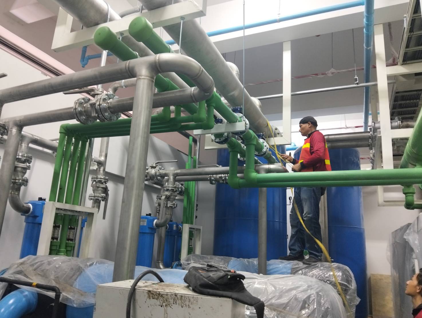 งานติดตั้งระบบท่อน้ำดี ท่อ Cooling ท่อ Chiller ในโรงงาน